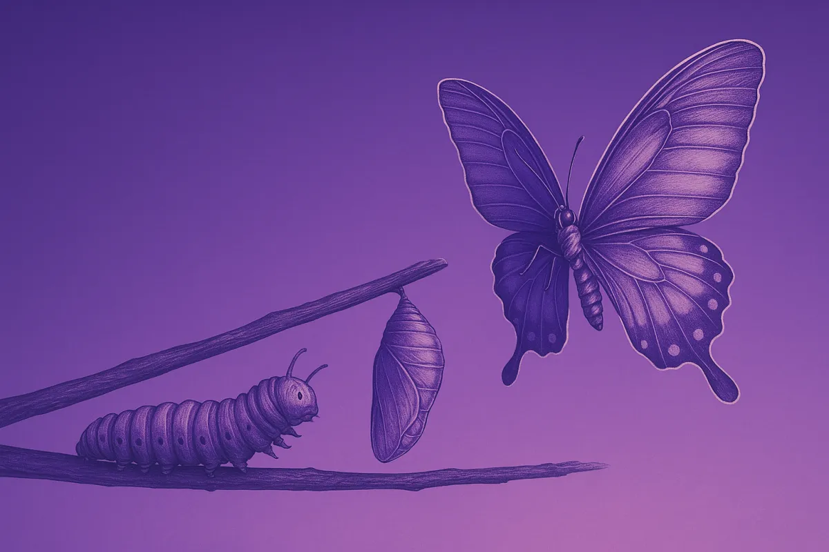 The caterpillar shows us beginnings, the cocoon teaches us surrender and trust, the butterfly reminds us that true transformation is never about becoming someone else it’s about revealing the beauty that was always within.